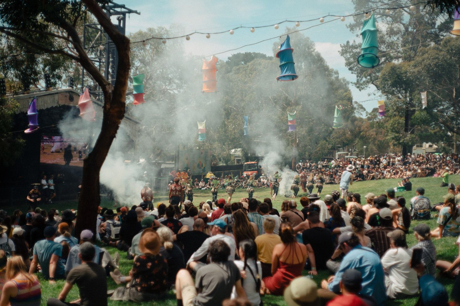 The festival kicked off with a full amphitheatre to take in the smoking and Welcome to Country from Uncle Barry, Aunty Tammy Gilson and family of the Wadawurrung people – the traditional owners of the land where Meredith takes place. As smoke made its way through the amphitheatre and we made our way towards it, there was a sense of excitement for what was to come mixed in with gratitude for the blessing from the Wadawrrung people who have been caring for this Country for thousands of years. The sentiment 'if you care for Country then it will care for you' is one that rings true. Tammy shared the wisdom of an Elder by talking about the three L's: look, listen, love; and the importance of these as we go through the festival together.