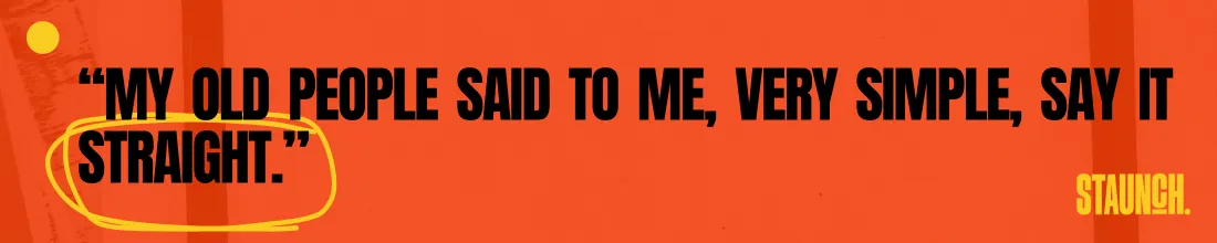 Jimmy challenges how Aboriginal people are pushed to the margins of society and the monopoly of ‘Australian identity’, he says, “Even the terminology around us, our languages aren't Australian languages. They're Aboriginal languages… If they were true patriots, they’d be funding Indigenous languages. They would want to learn Indigenous languages.”